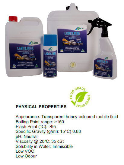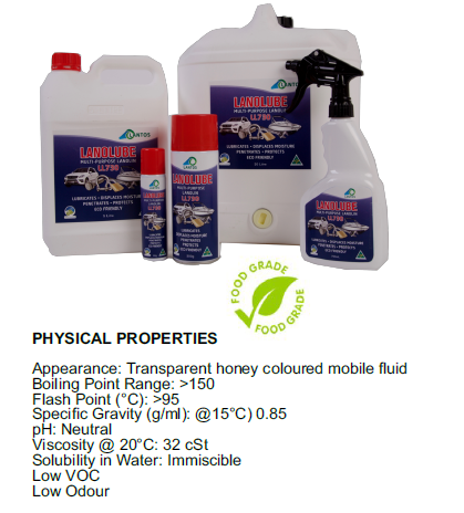 Lanolube® LL730 is a lightly blended lanolin liquid spray on film, that penetrates and protects. A multi-purpose lubricant suitable for all general purpose applications in industrial, marine and home workplaces.