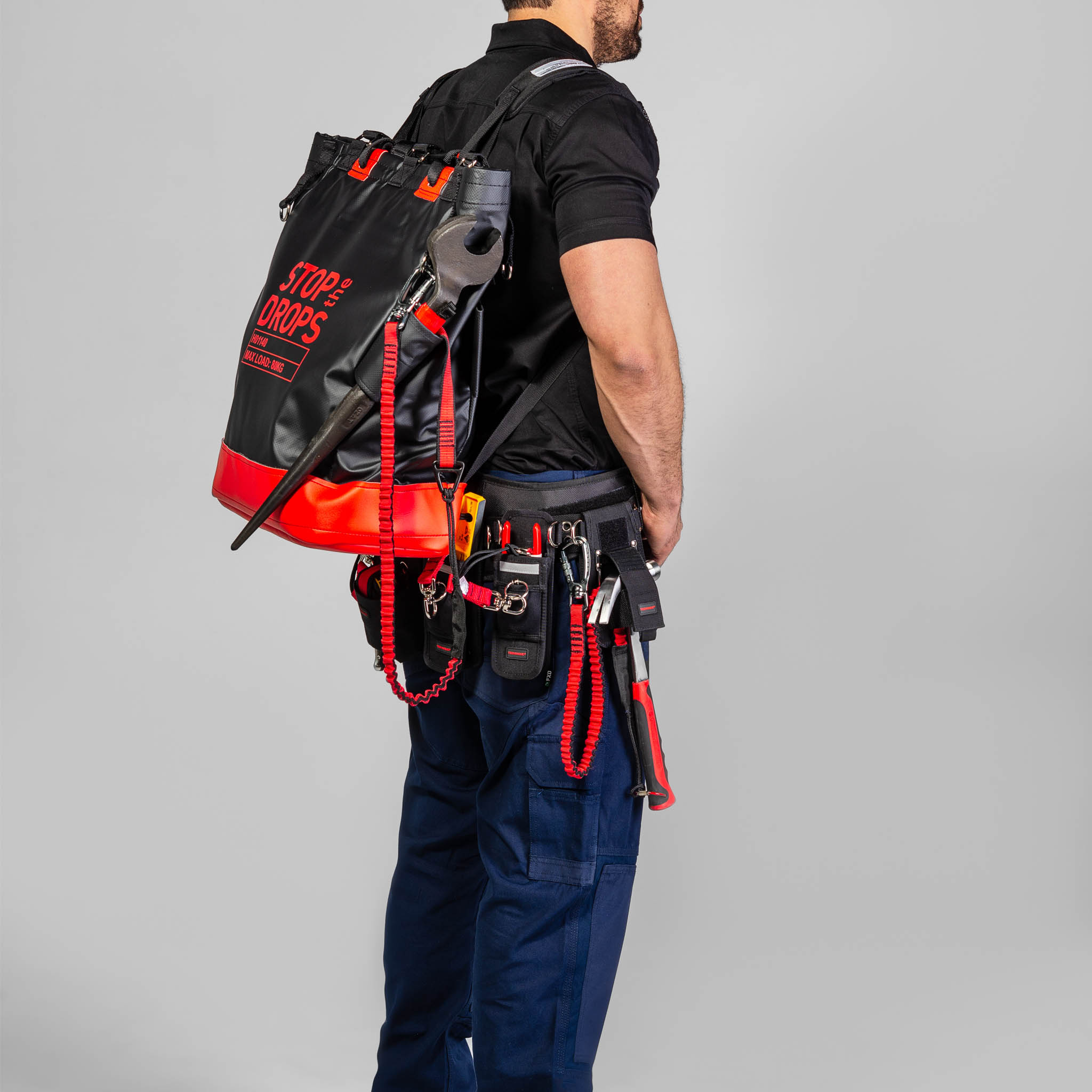 Ideally suited to safely secure tools and equipment being used and manually transported at height the Stop the Drops mule bucket includes a host of features to prevent dropped objects.